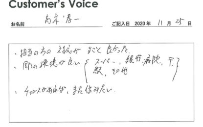 ◉こちらこそ、ご入居ありがとうございました。また、身に余るお言葉をありがとうございます。スタッフ一同、励みとさせていただき、これからも精進してまいります!(二代目より)
