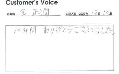 ◉こちらこそ、長い間、本当にありがとうございました。金くんの人生の一時期にわたしたちが関わらせてもらえたことを感謝しています。新天地でもますますのご活躍を!(二代目より)