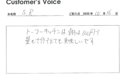 ◉友だちと一緒にいつもトーコーキッチンを利用してくれてありがとう。バリバリのアスリートなSくんに量と質にそう言ってもらえると、スタッフ一同、励みになります!(二代目より)