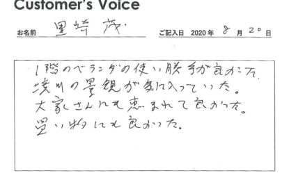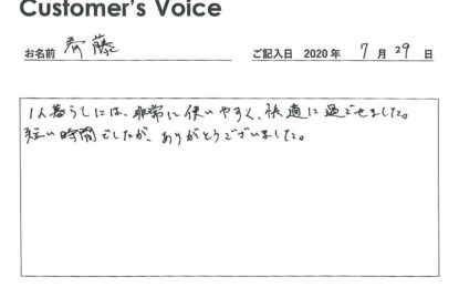 ◉藤澤さん、住まいや暮らしで少しでも気になることがあったときには、すぐに相談してくれてありがたかったです。こちらこそ、2年間ご入居ありがとうございました!(二代目より)