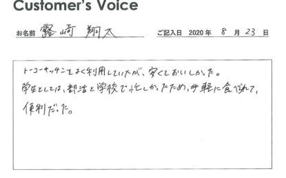 ◉学生さんに便利だと思ってもらって、きちんと朝食を食べてもらえると、ボクたちとしてもうれしい限りです。またこちら方面に時には、トーコーキッチンに寄ってね!(二代目より)