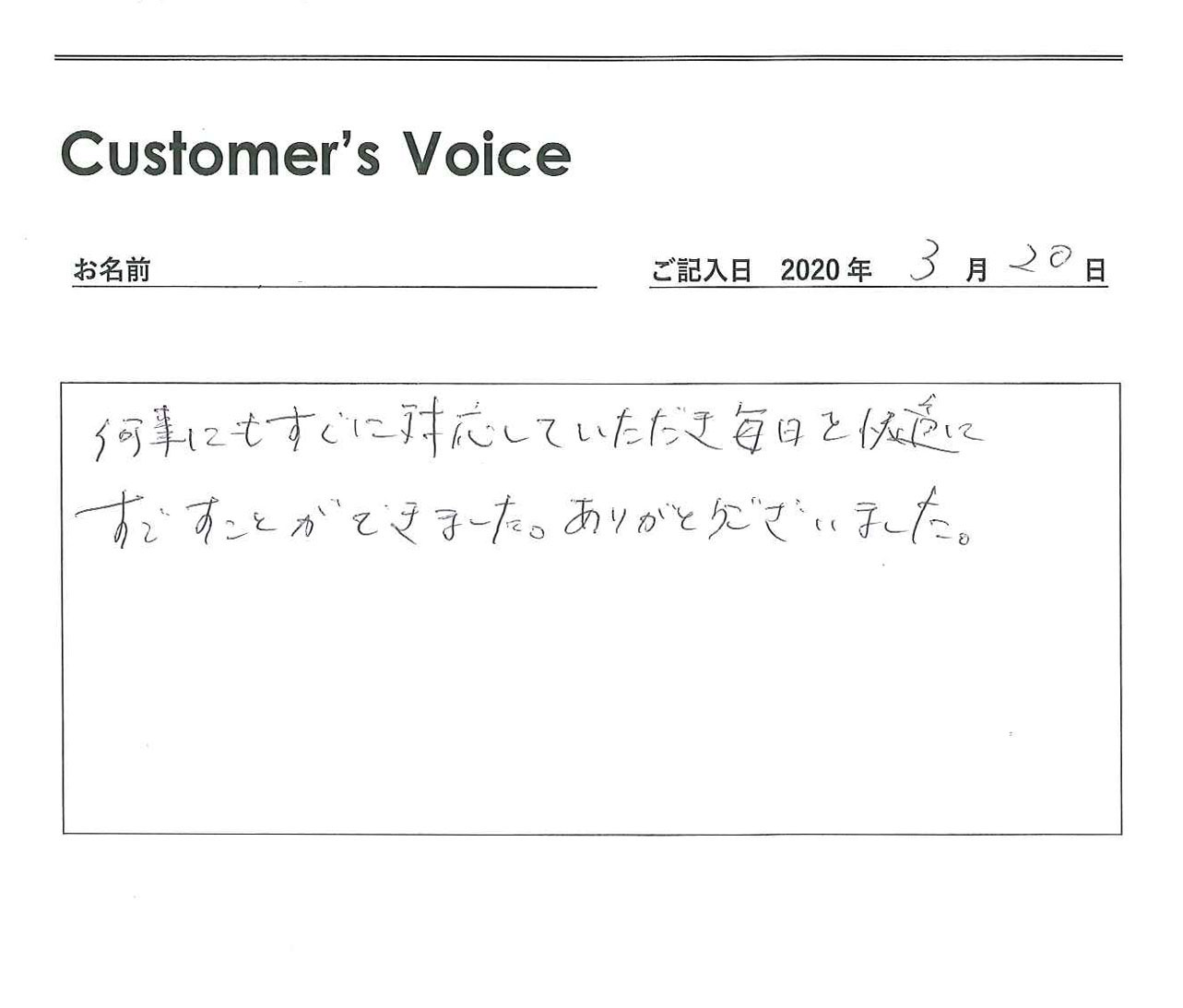 丁寧で迅速な対応に感謝!