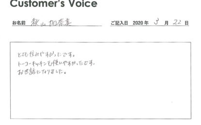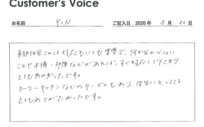 ◉快適で安心安全な暮らしを提供し続けるのがボクたちの仕事なので、Eさんの言葉は本当にうれしく、これからの励みになります。こちらこそ、ありがとうございました!(二代目より)