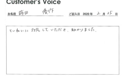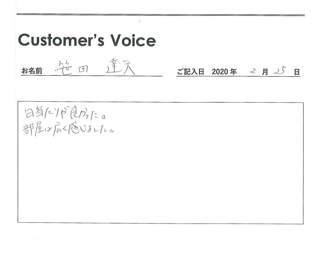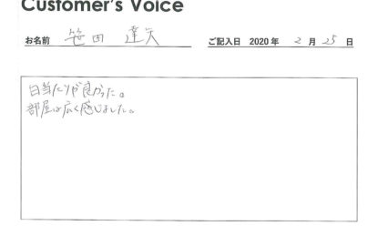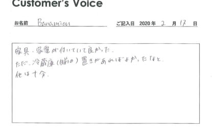 ◉蒔田くん、こちらこそ、丁寧にお部屋に住んでくれてありがとう。オーナーさんも良い入居者さんに恵まれたと感謝しています。新しい生活も体に気を付けて頑張ってね!(二代目より)