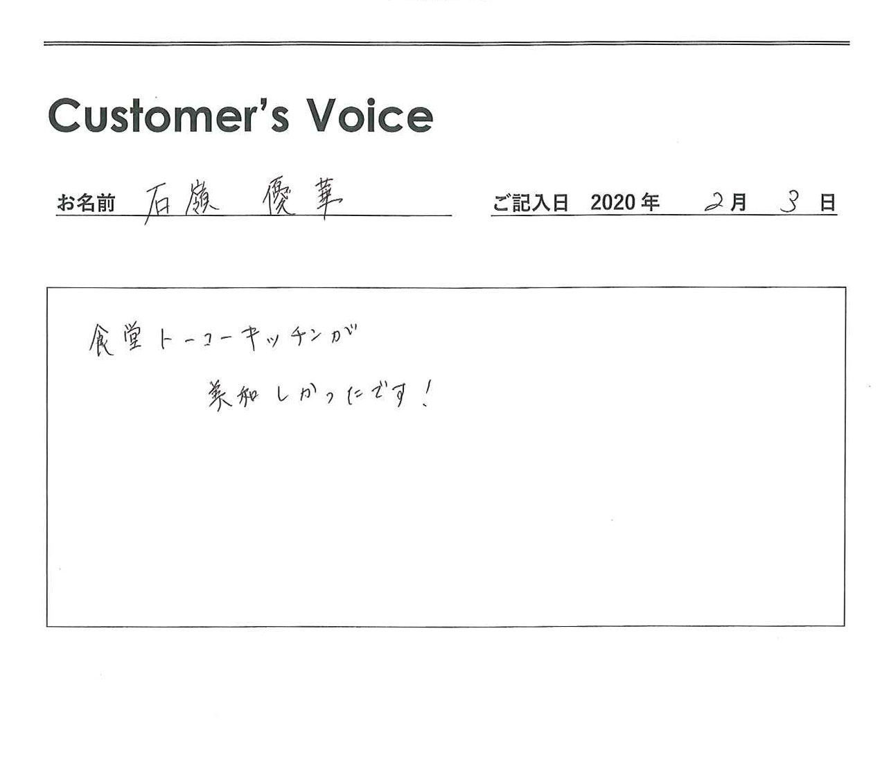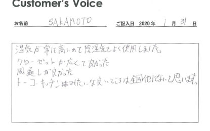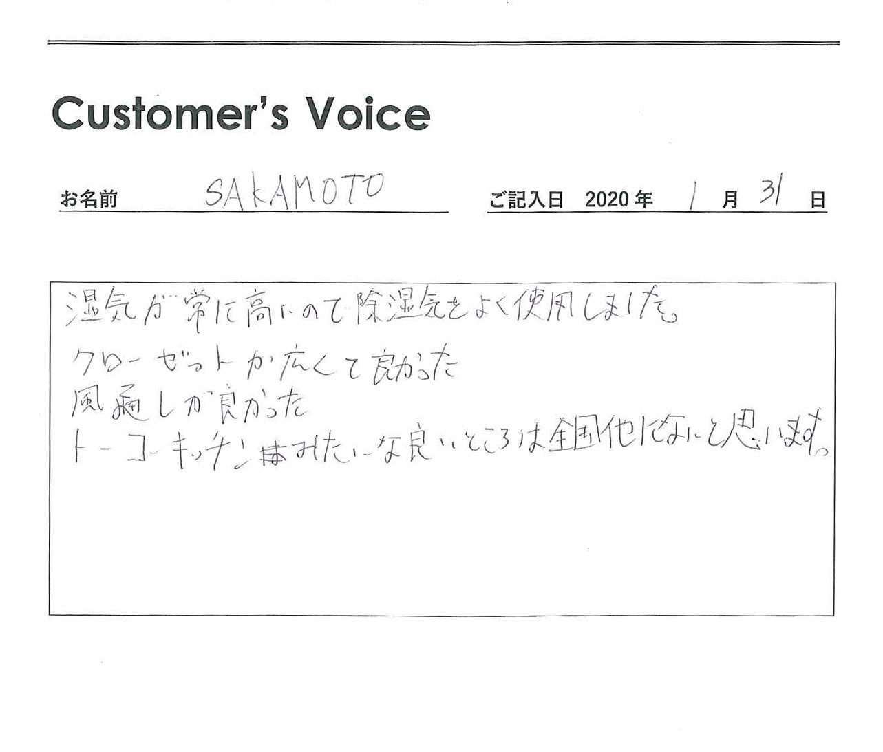 ◉お部屋の感想&貴重な情報をありがとう! 湿気の件はさっそく確認します。トーコーキッチンのこともありがとう。そう思ってもらえるように、これからも精進します!(二代目より)