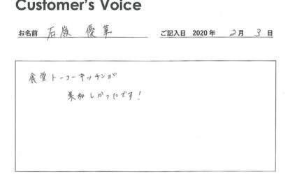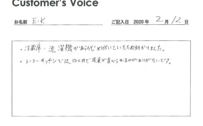 ◉Kさん、トーコーキッチンを活用してくれてありがとう。不動産屋冥利に尽きます。家電付きの部屋は退室するときにも楽ですよね。卒業おめでとう。新生活も楽しんでね!(二代目より)