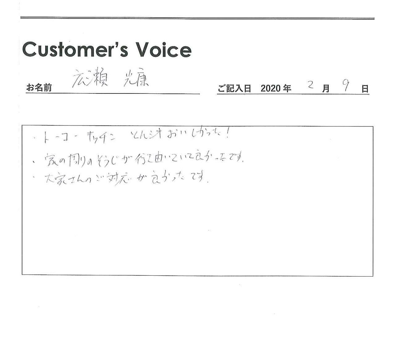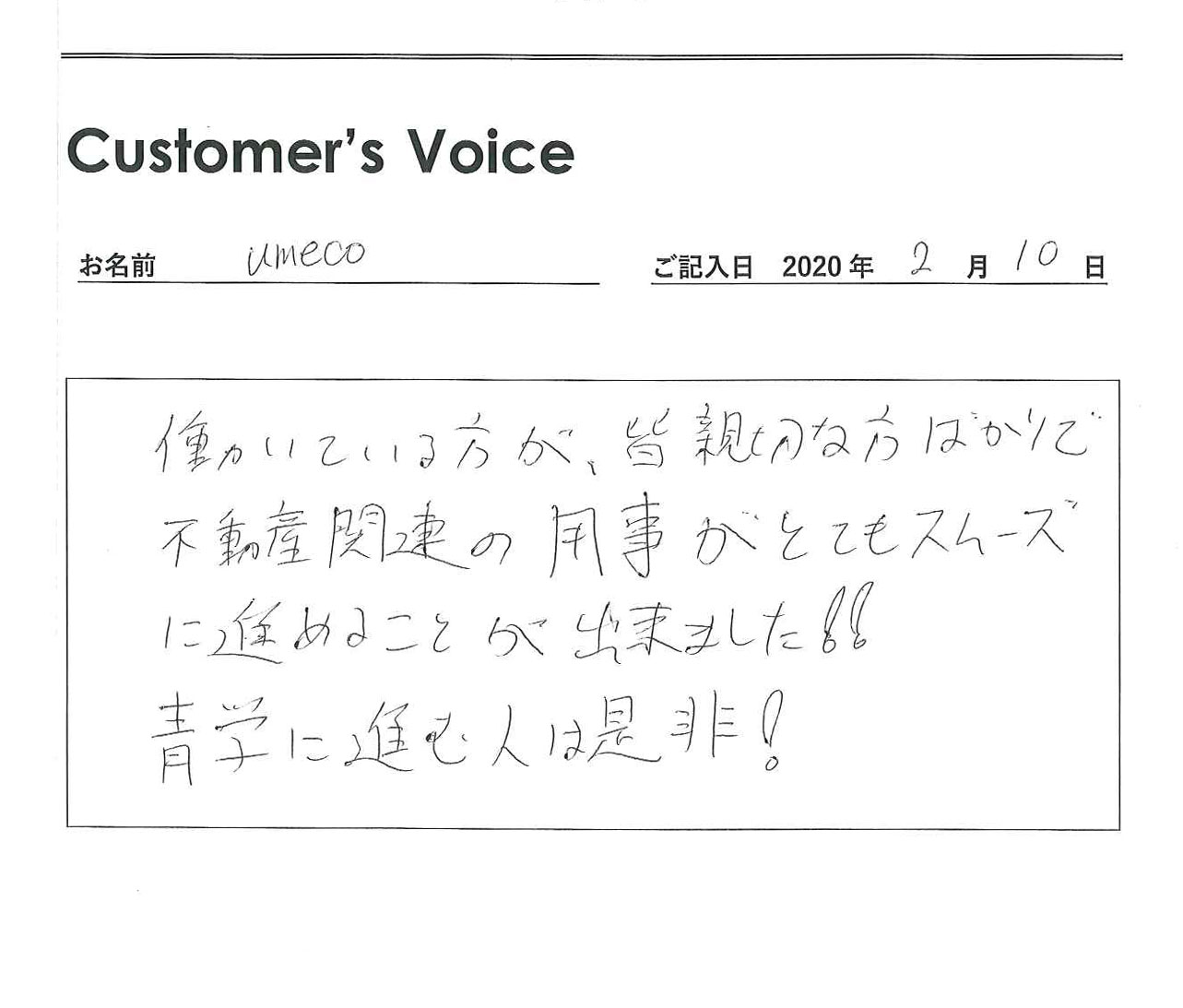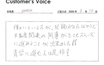 ◉うれしいお言葉の数々をありがとうございます。何よりうれしかったのは、オーナーさんのお気持ちが広瀬さんに伝わっていたということです。管理会社冥利に尽きます!(二代目より)