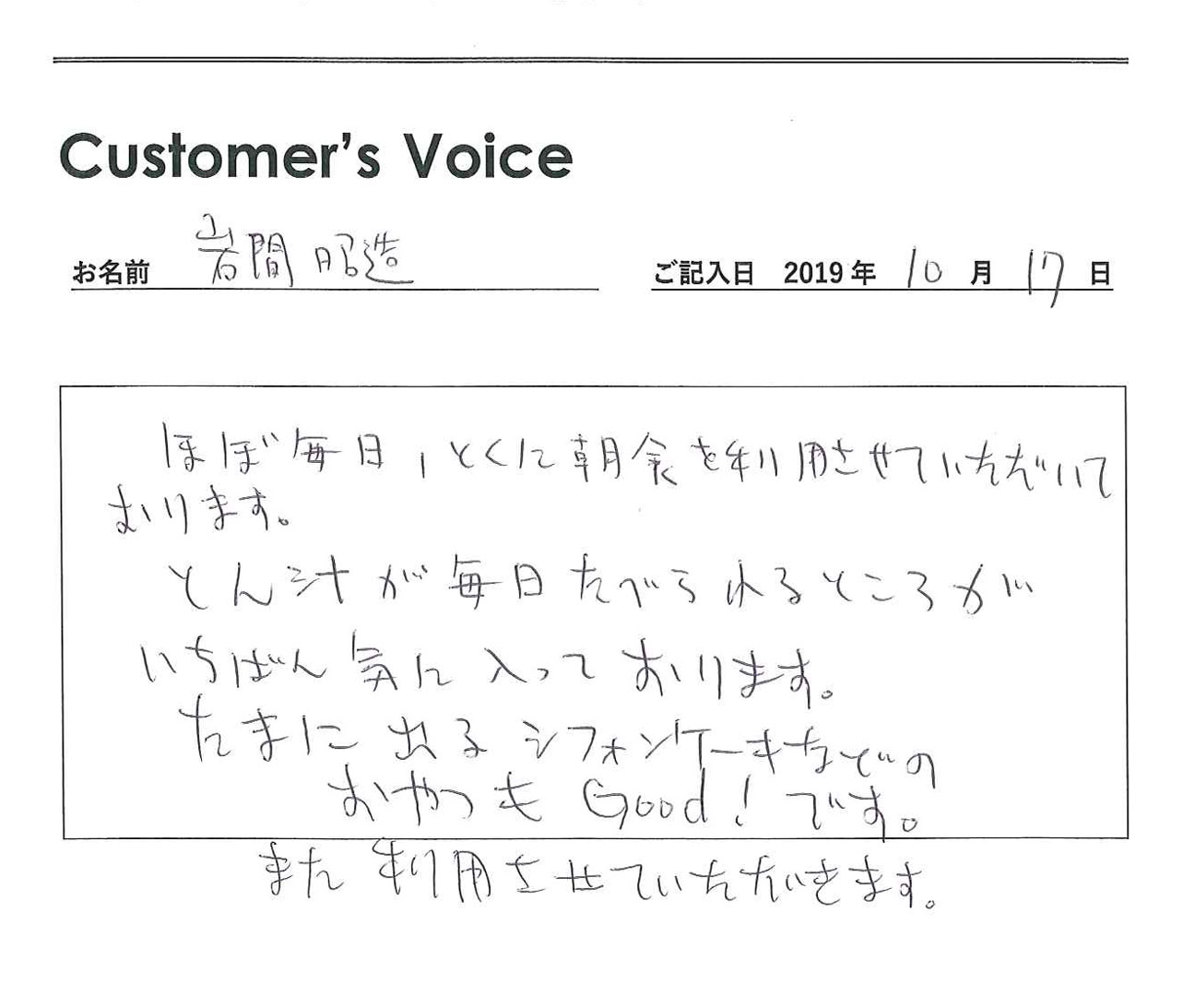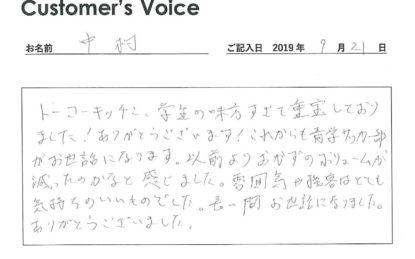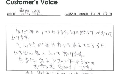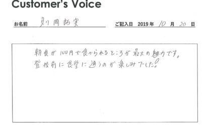 ◉長谷川さん、うれしいコメントありがとう。「おいしい」と言われるのが何よりうれしい不動産屋にとって最高の褒め言葉です。新生活も頑張ってね。応援してます!(二代目より)
