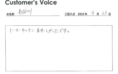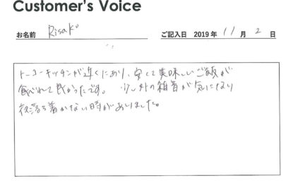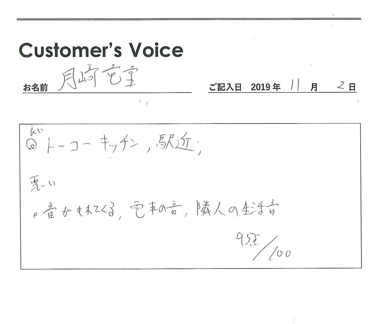 ◉いつもトーコーキッチンご利用ありがとうございました。駅近で目の前がバス通りなので便利な分、少し外の音はありますよね。対策がないか参考にさせていただきます!(二代目より)