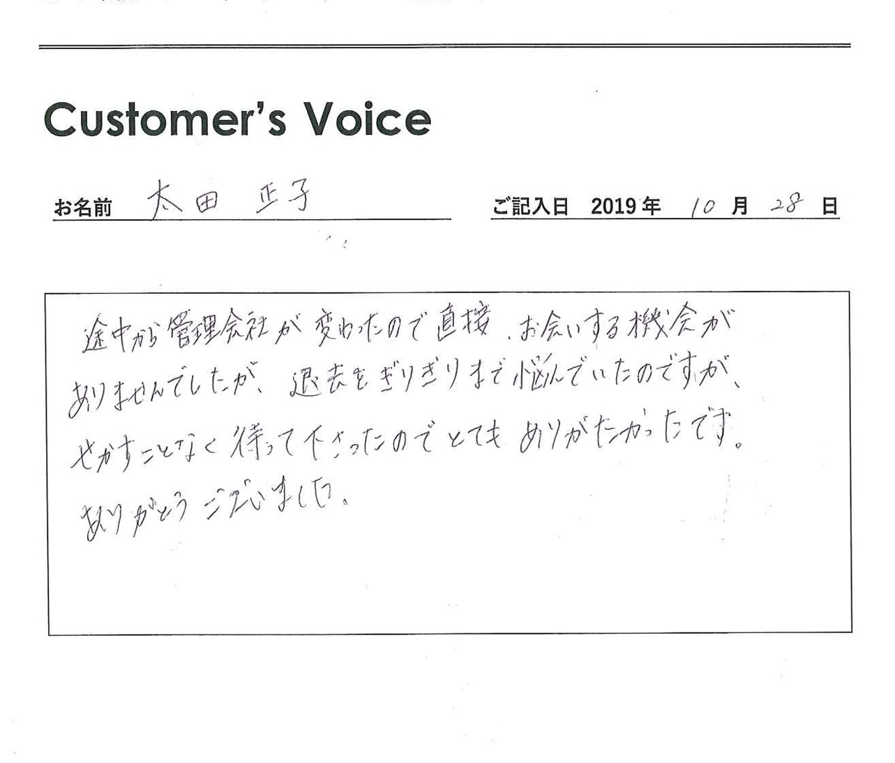 ◉ご入居途中での当社管理物件への変更へのご協力ありがとうございました。新生活での利便性が第一です。新天地でのますますのご活躍を心よりお祈り申し上げます!(二代目より)