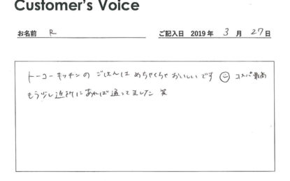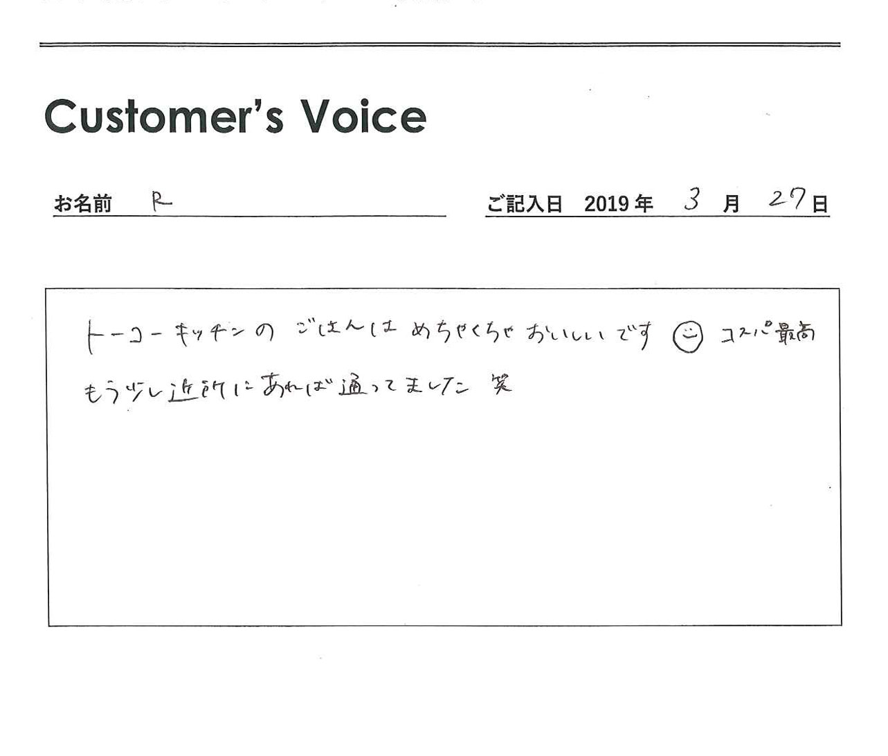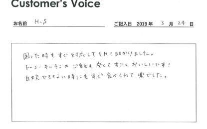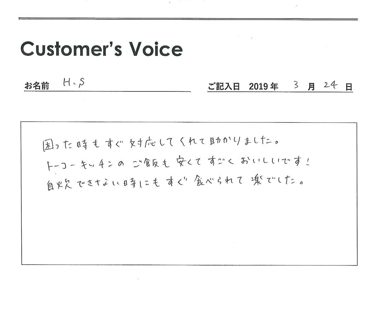 ◉自炊したいけど忙しくてできない、でも、ちゃんと料理したものを食べたい。そんなSさんのようなトーコーキッチン有効活用法は本当にうれしいです。ありがとう!(二代目より)