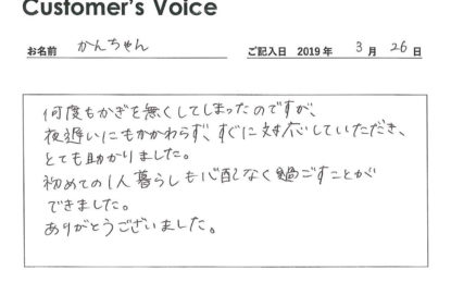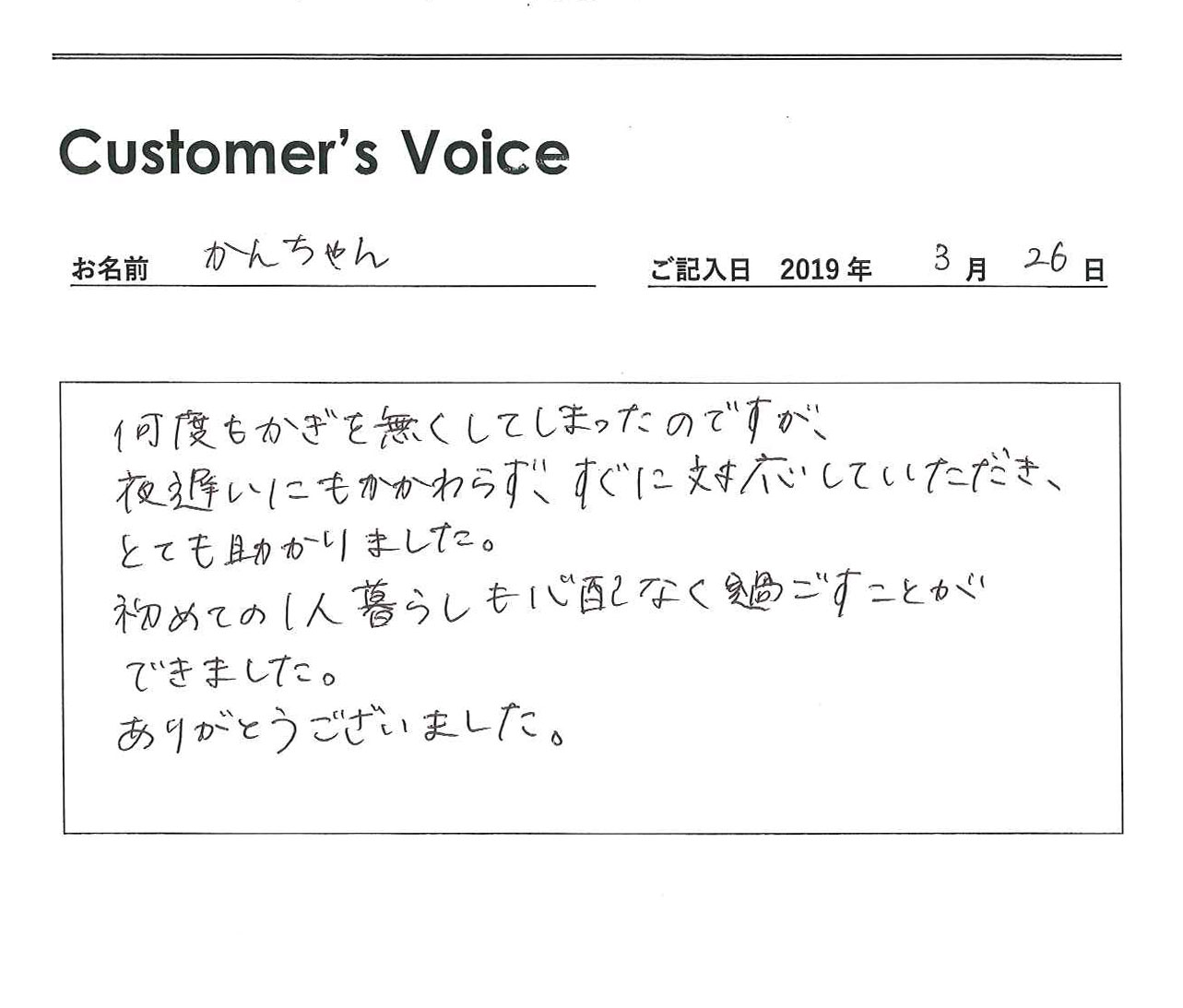 ◉かんちゃんさーん!笑 確かに、何度も鍵を作って届けに行きましたね笑 でも、失くしたのは毎回鍵だけだったので、本当によかったです。新天地でもがんばってね!(二代目より)