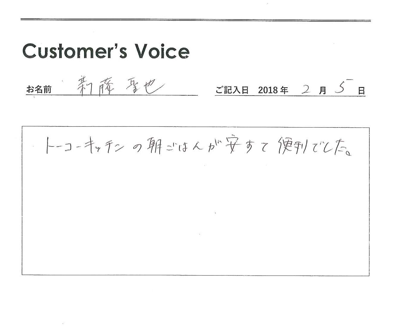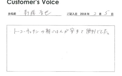 ◉新藤くん、トーコーキッチンを便利に使ってくれてありがとう。不動産屋冥利に尽きます。これからは電車に乗っている時間が多くなって大変だけど、頑張ってね!(二代目より)