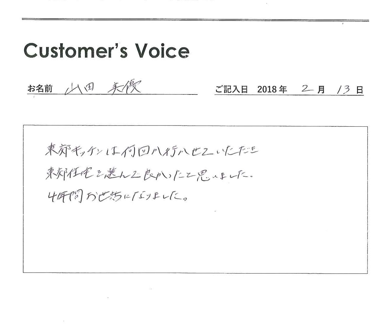 ◉トーコーキッチンを利用した上で、東郊住宅社を選んで良かったと思ってもらえることは不動産屋冥利に尽きます。こちらこそ、4年間ご入居ありがとうございました!(二代目より)