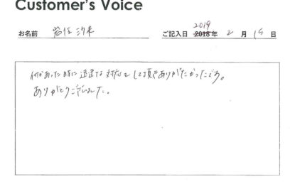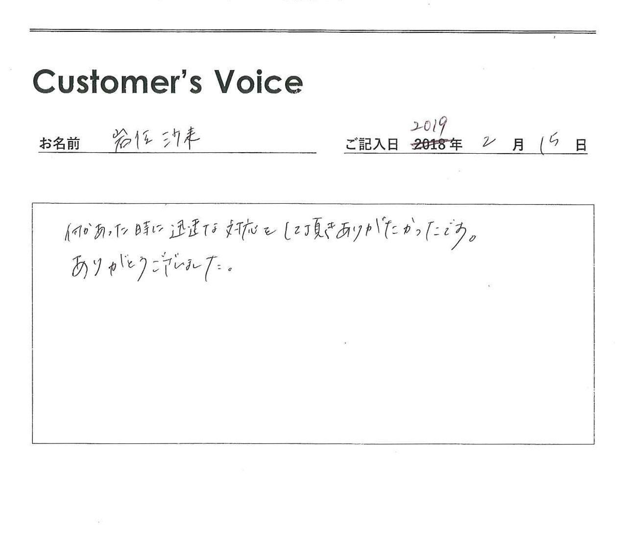 ◉契約してからが本当のお付き合いの始まりですから、何かあった時に迅速な対応するのは当然ですよ!笑 それよりも、何かあった時にすぐ知らせてくれてありがとう!(二代目より)