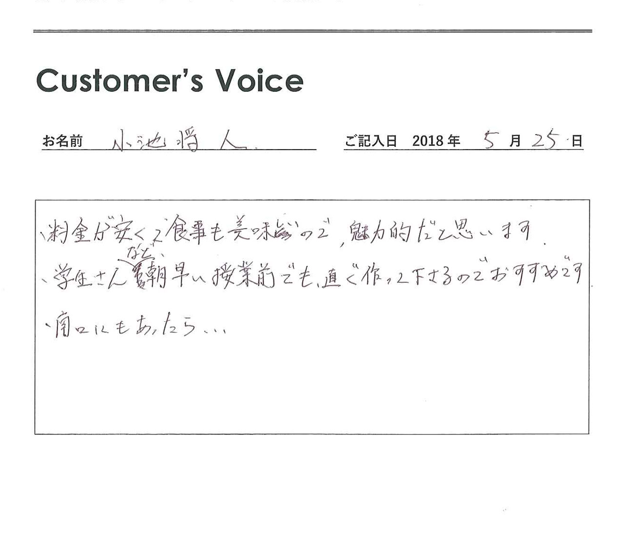 ◉今回も契約更新ありがとうございます。東郊歴の長い小池さんにトーコーキッチンをご利用いただけてうれしいです。南口での開店ご所望の声もうれしいです!(二代目より)