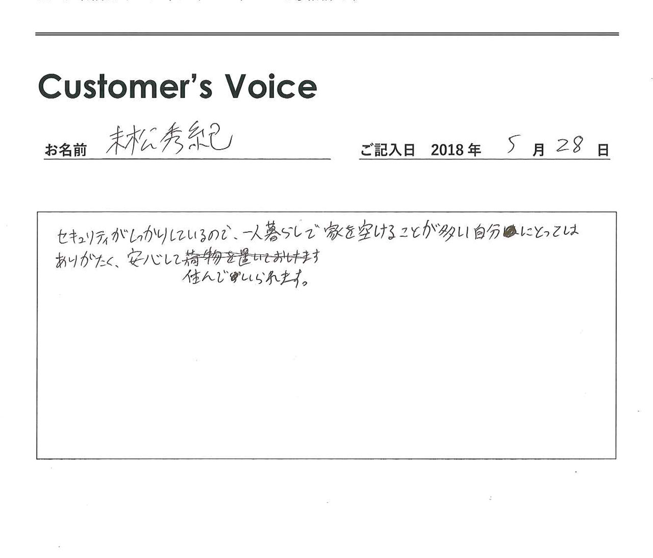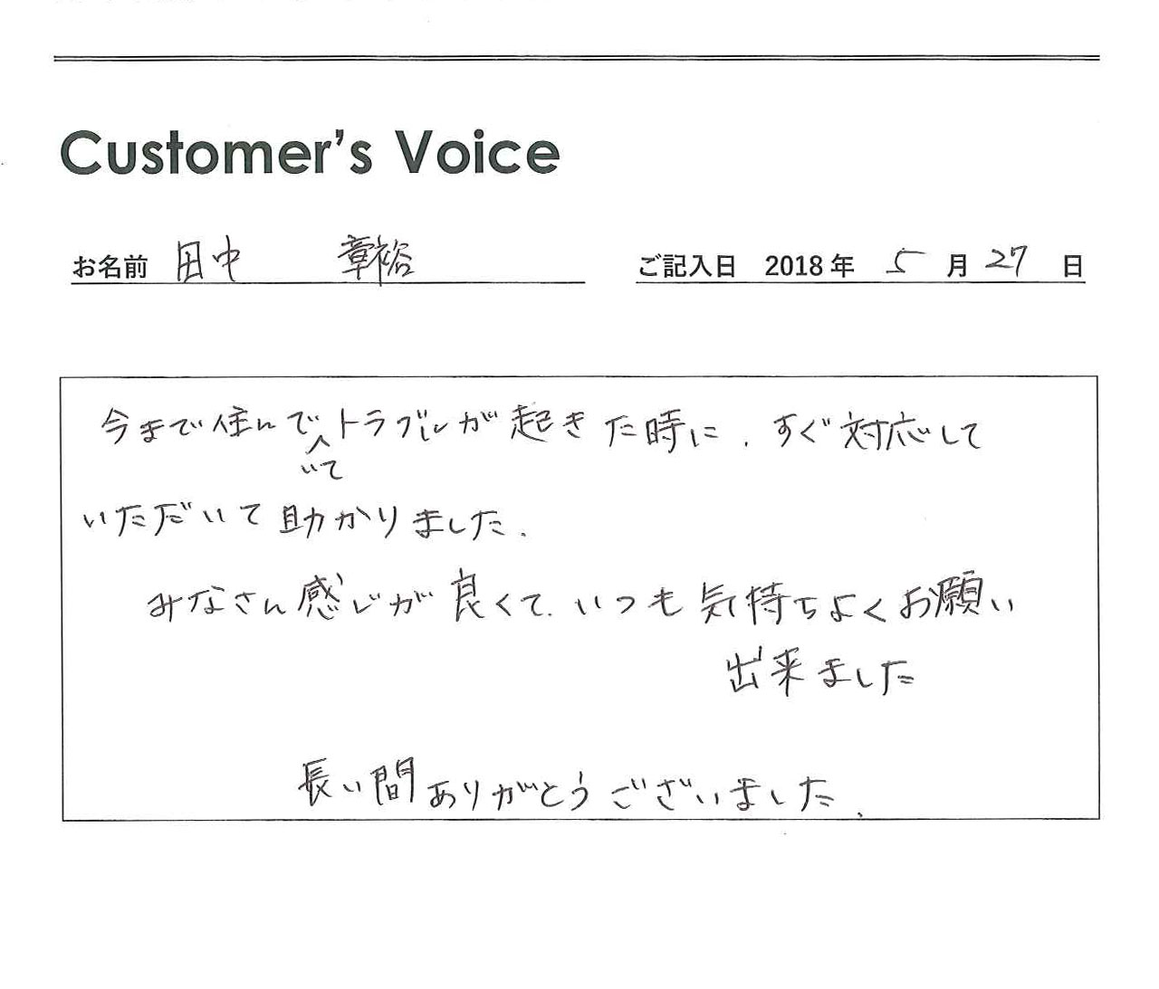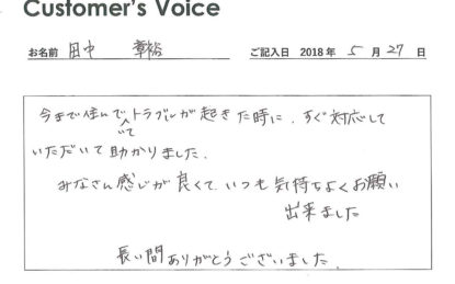 ◉10年以上もの長期にわたり当社管理物件へご入居くださり、こちらこそ本当にありがとうございました。転居先でもどうか変わらずにお元気でお過ごしください!(二代目より)