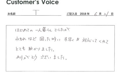 素早い対応で初めての一人暮らしも安心
