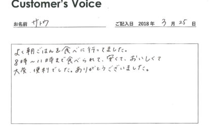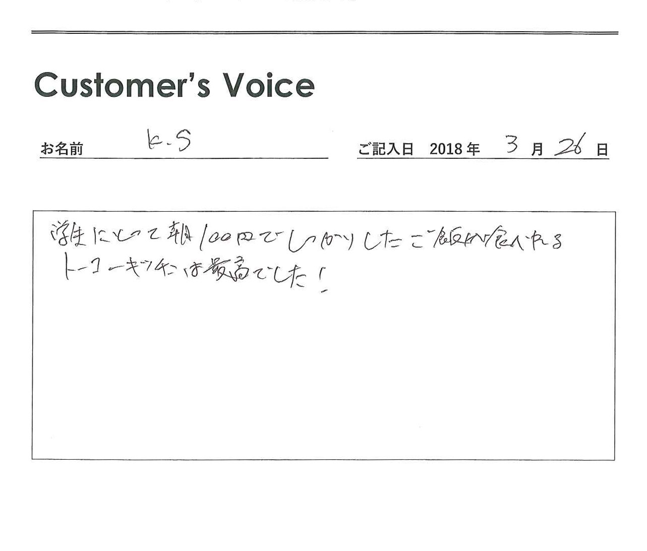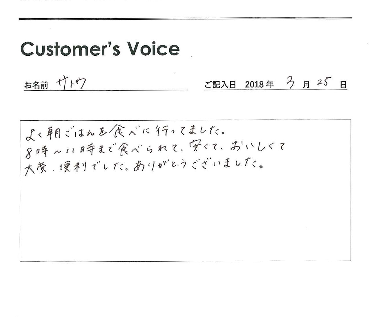 ◉サトウさん、朝ごはんをいつも食べに来てくれていてありがとう。そして、卒業おめでとう。また朝ごはん食べたくなったら、気軽に立ち寄ってね!(二代目より)