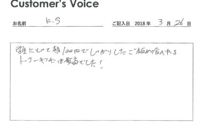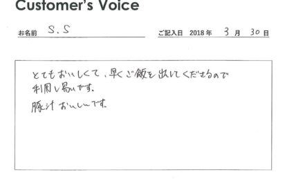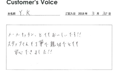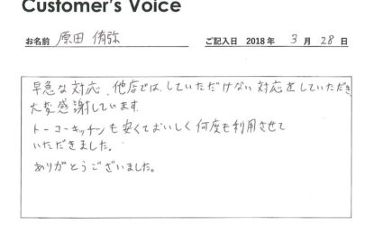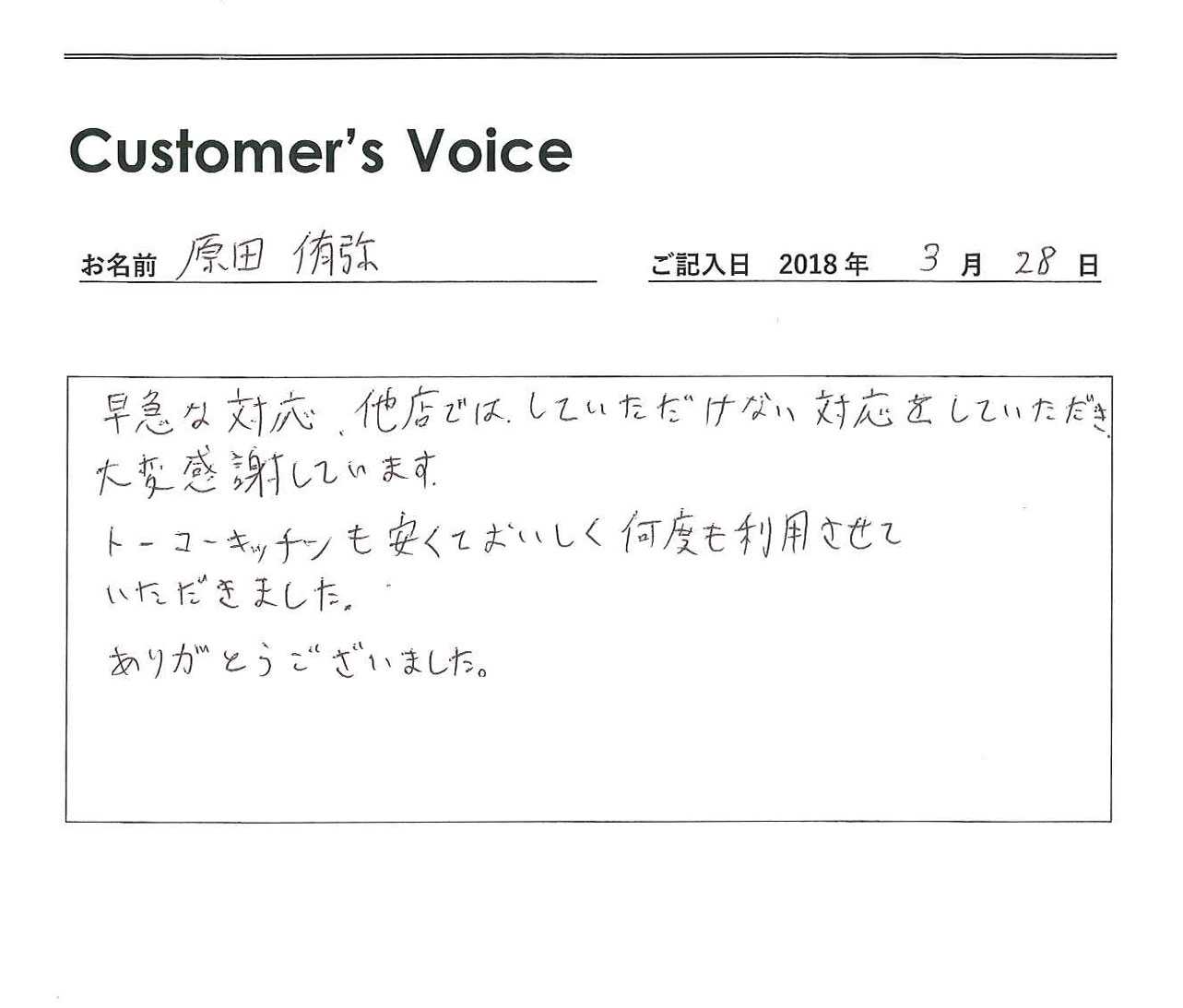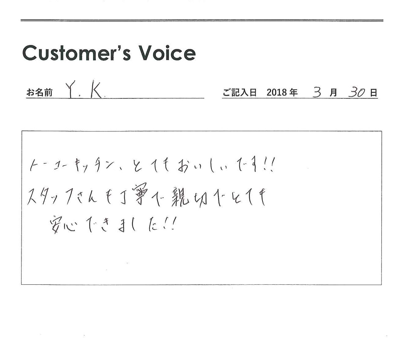 ◉お付き合いの長いSさんにトーコーキッチンを褒めてもらえると、とっても励みになります。これからも皆さんに喜んで利用していただけるよう精進します!(二代目より)