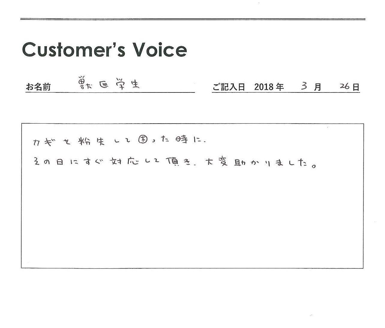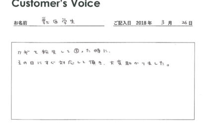 ◉獣医学生さん、そういうこともあったね笑 でも当社は緊急時24時間対応なので大丈夫。失くしたのがカギだけでよかった。これからもよろしくね!(二代目より)