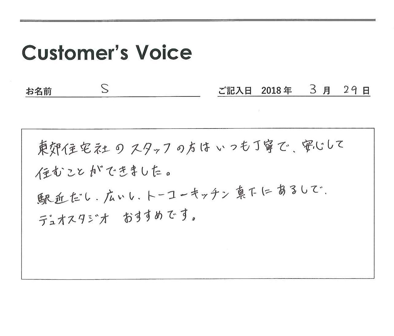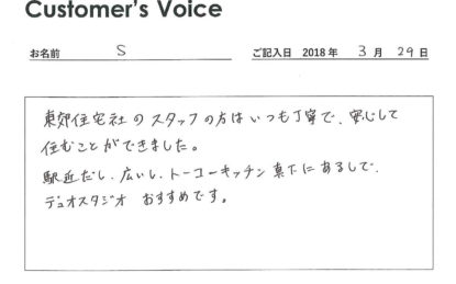 ◉Sさん、「安心して淵野辺生活を送れた」との不動産屋冥利に尽きる言葉をありがとう。1Kマンション「デュオスタジオ」はトーコーキッチンまで徒歩0分!(二代目より)