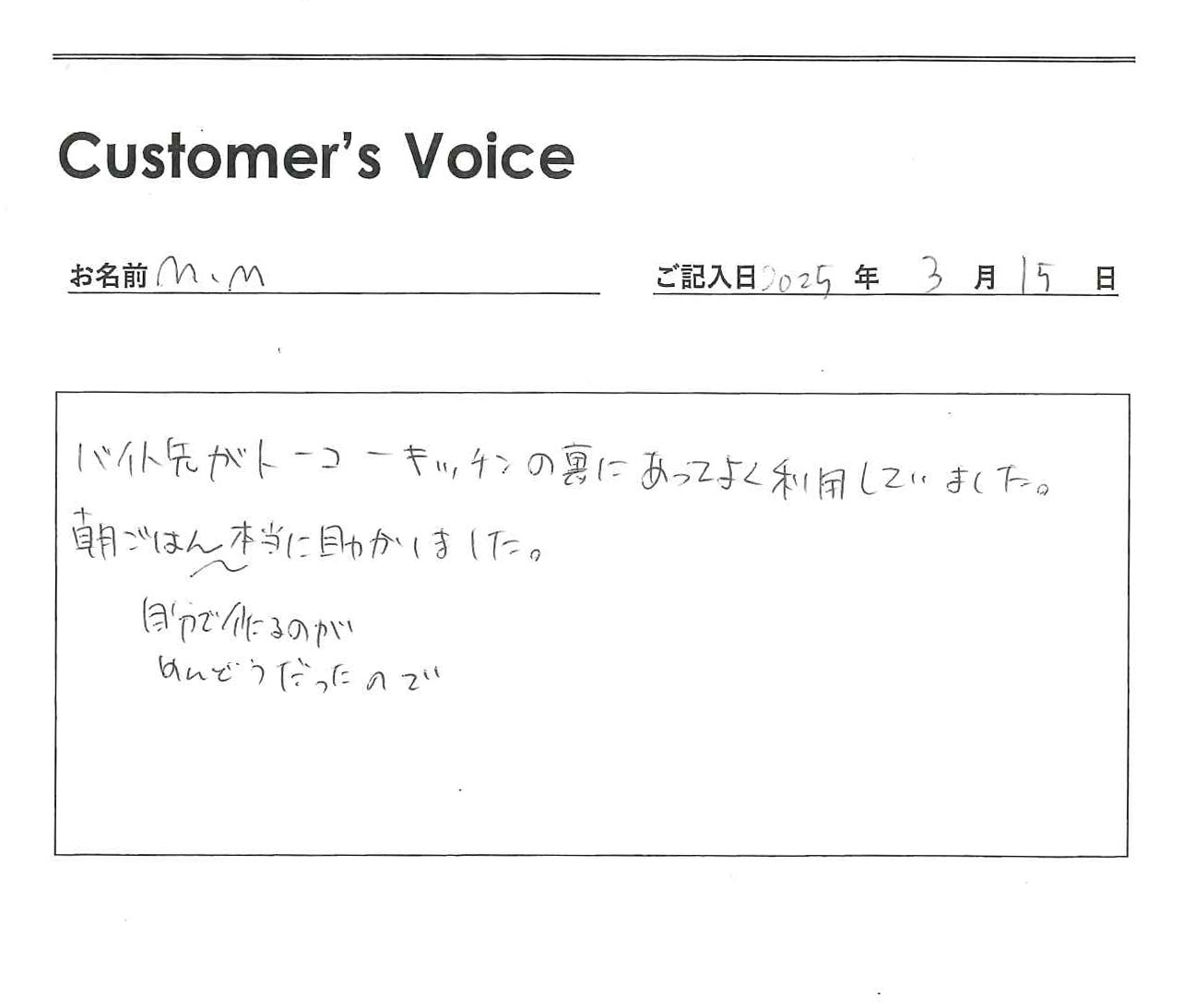 ◉トーコーキッチンは利便性と健康的な食生活を提供することを第一に運営しているので、便利に有効活用してくれた声が聞けると本当にうれしいです。どうもありがとう!(二代目より)