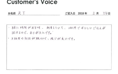 ◉Yくん、トーコーキッチンから少し離れている物件なのに、いつも自転車で来てくれてありがとう。すごくうれしい利用方法です。勉強頑張ってね!(二代目より)