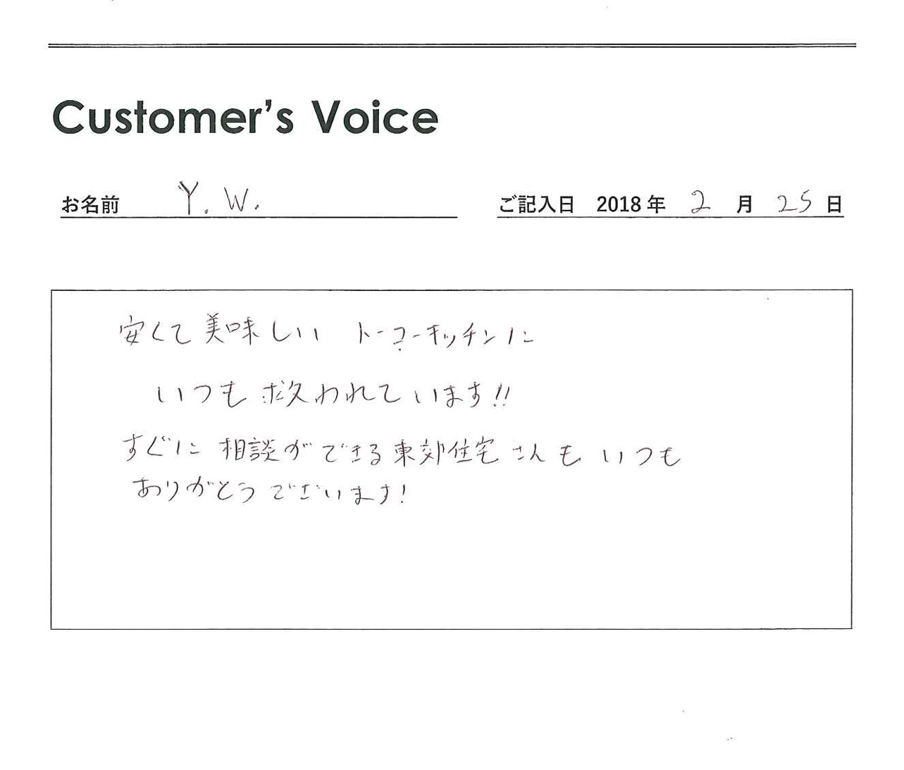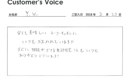 ◉当社とYくんとのお付き合いは「契約してからが本当の始まり」です。本社でもトーコーキッチンでも構わないので、いつでも気軽に相談してね!(二代目より)