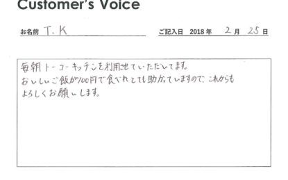 ◉Kくん、毎朝利用してくれてありがとう。Kくんのような超常連さんの存在はスタッフ全員の励みになります。こちらこそ、これからもよろしくね!(二代目より)