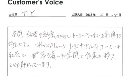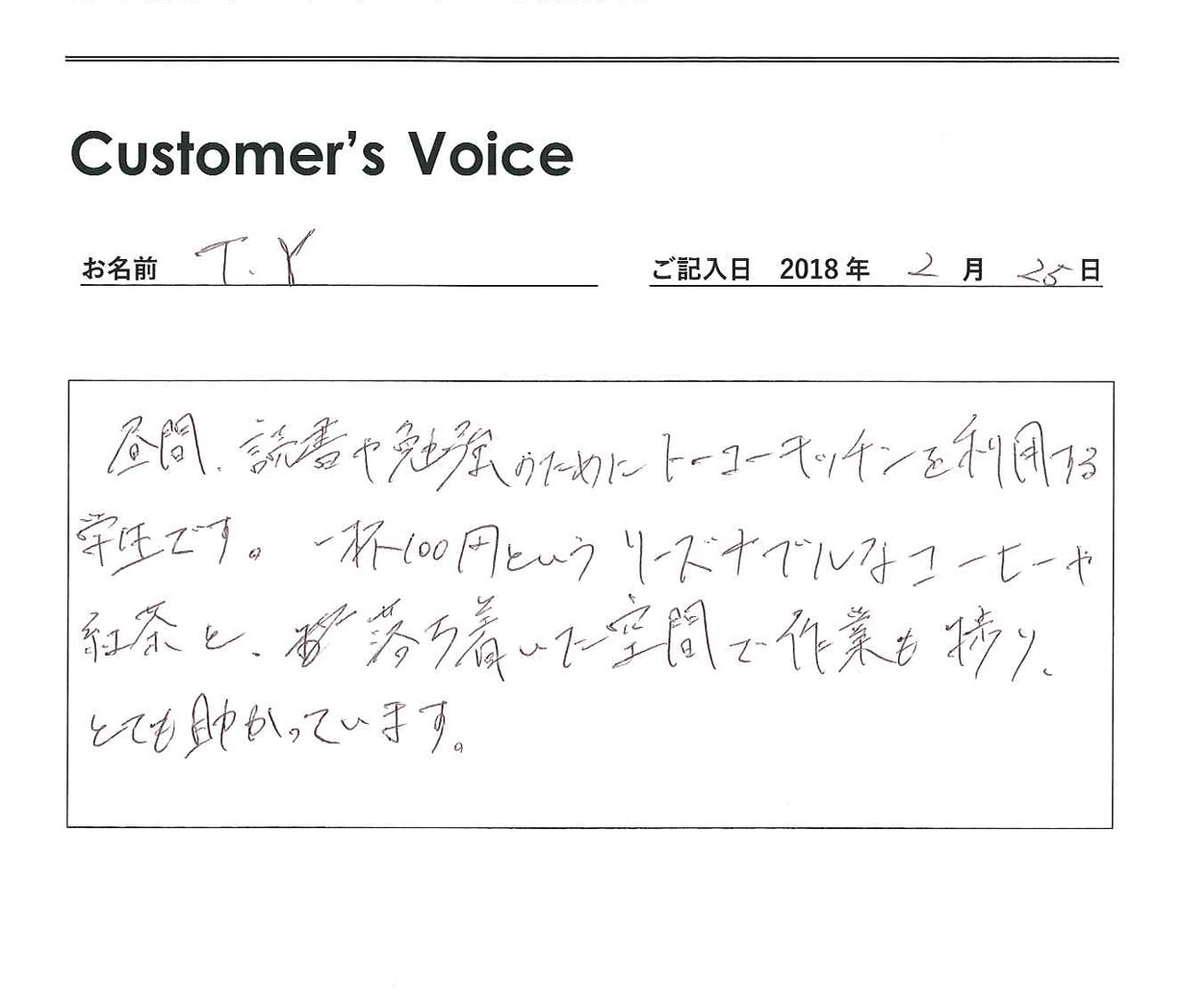 ◉トーコーキッチンに行くにはちょっと不便な位置に住んでいるのにも関わらず、有効活用してくれているTくん。こちらこそ、ありがたいです!(二代目より)